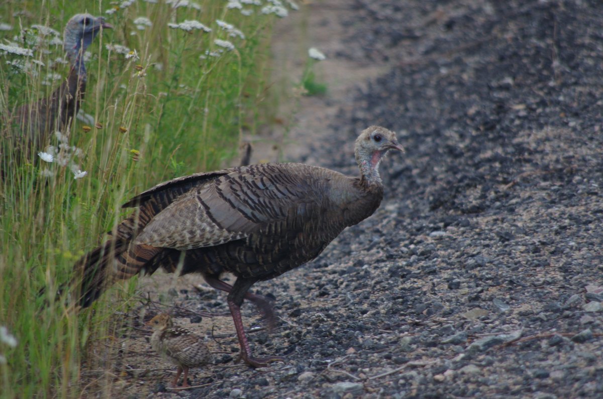 The morning of our departure we saw a turkey acting strangely by the side of the road. She didn’t have a poult by her side, so at first I thought it must be a different bird… until Peter said, “Oh.” I turned and saw the dead baby in the middle of the road. It had been run over by a car. The mother was craning her neck towards it, trying to see her offspring, acting listless and not caring to get out of the way of the oncoming traffic. I cried my heart out.