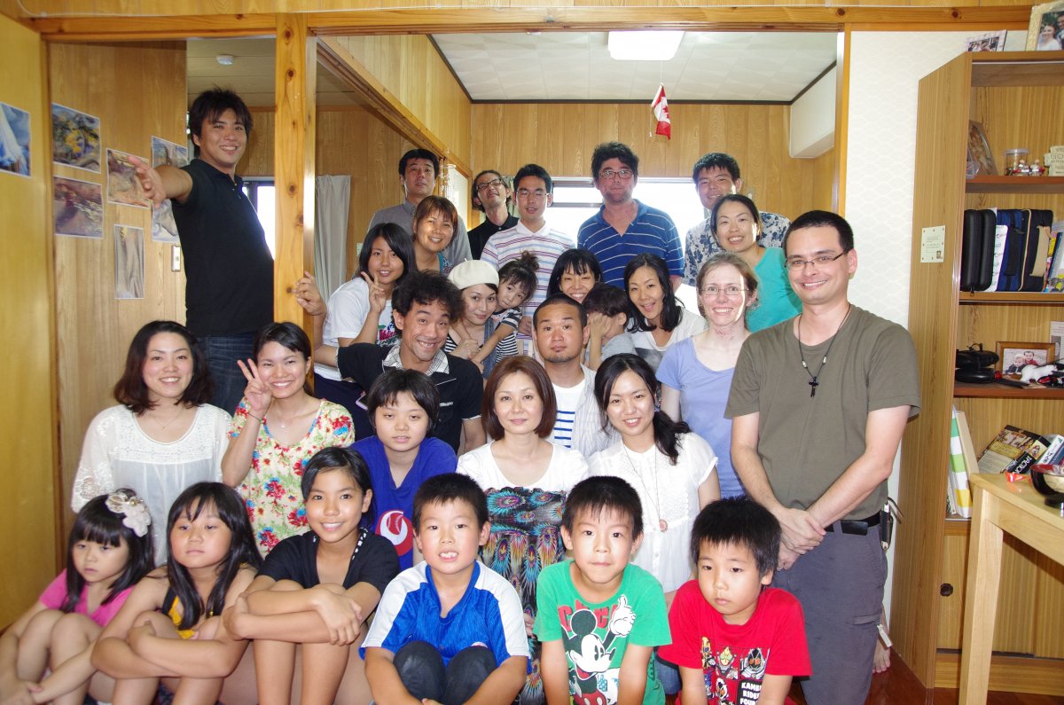 We hung Canadian flags from our lights, displayed Canadian paintings on our walls, played Canadian music , decorated a Canadian cake, gave away Canadian keychains, and had Canadian door prizes. At then end of the party we set off Okinawan fireworks in the park beside us (our friend brought them for us – what a great gift!).